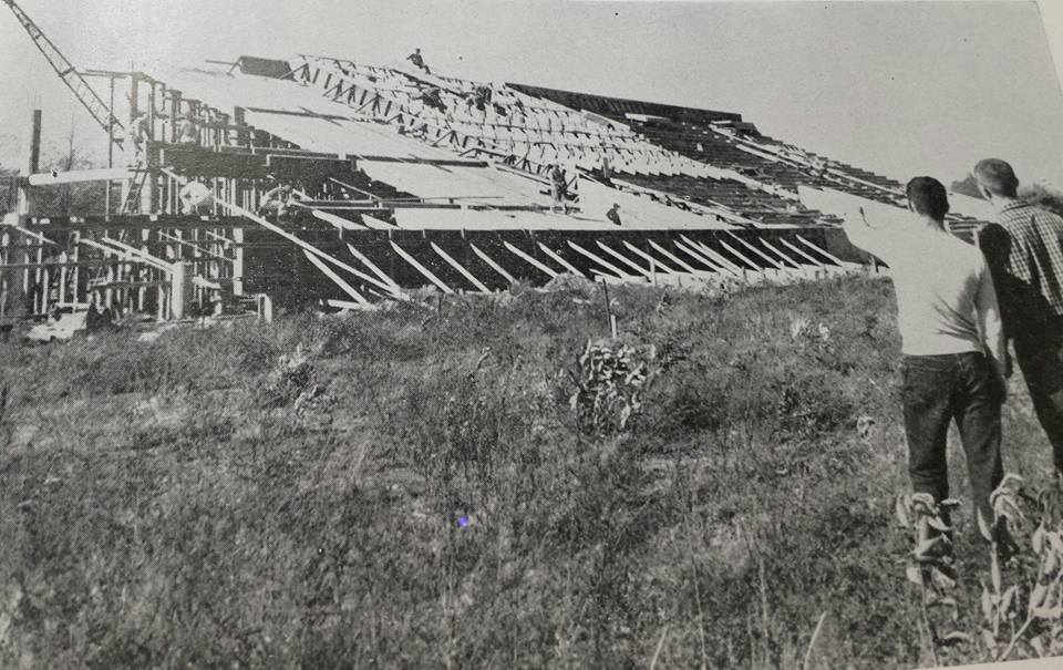 Here is a picture of Veteran’s Memorial Stadium under construction.